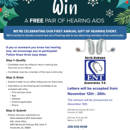 *Cannot be combined with insurance benefits. Candidate cannot be a North Alabama ENT Associates employee or a family member of a North Alabama ENT Associates employee. Candidate must be 18 years or older.