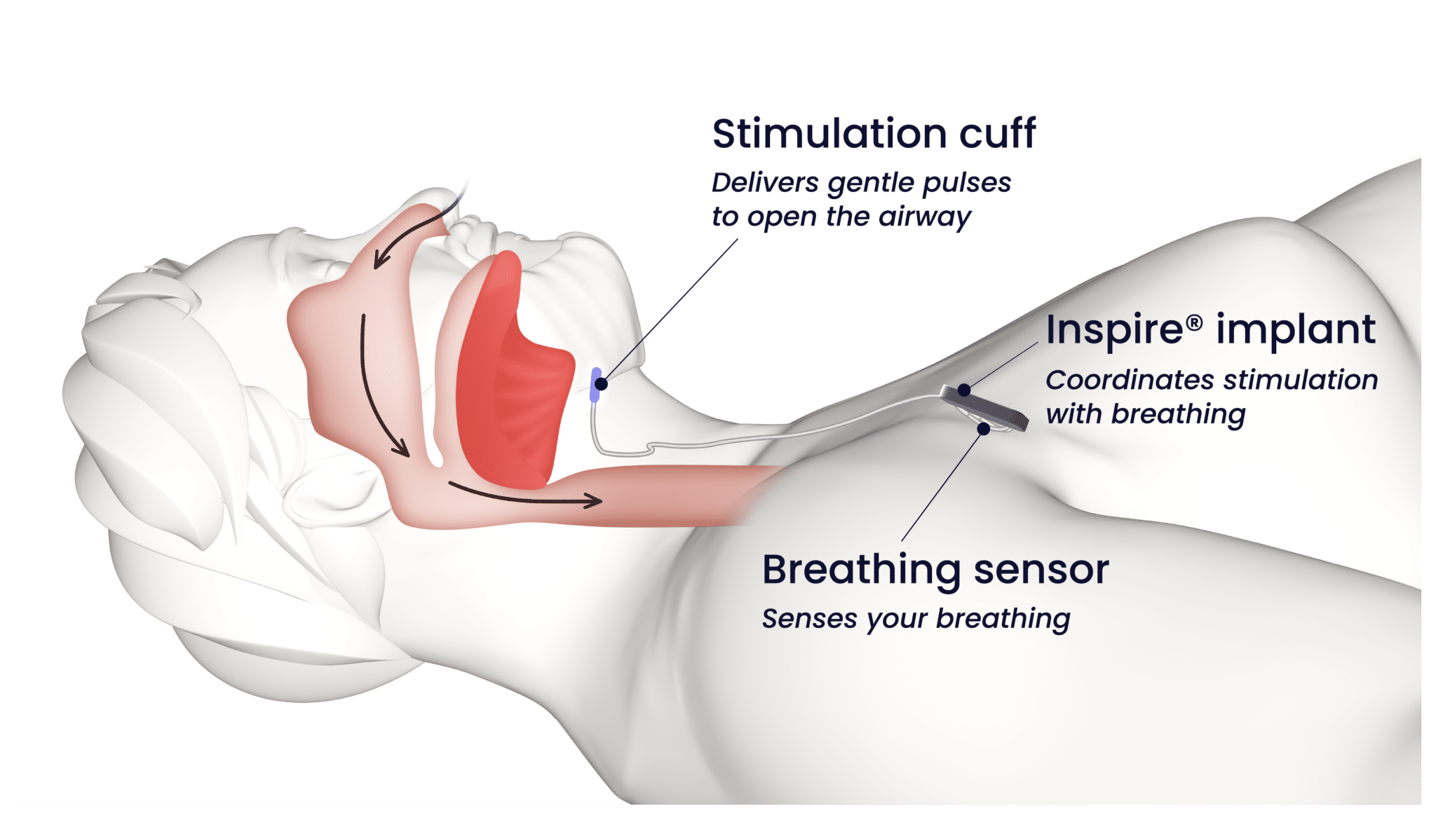 The small Inspire® implant delivers gentle pulses to your airway muscles to keep your airway open so you can breathe regularly and sleep soundly.